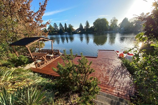 Saját partszakasz áll a vendégek részére, 25 nm stéggel, napozó terasszal, napozóágyakkal és hintaággyal. A holtág szépsége csónakkal megcsodálható mely a nyaralóhoz tartozik, térítés ellenében elektromos csónak motort biztosítunk.