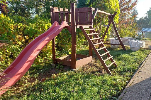A gyerekek szórakozását hintával, csúszdával, mászókával, homokozóval felszerelt játszótér mellet egy kültéri 4x0,9 m medence biztosítja.