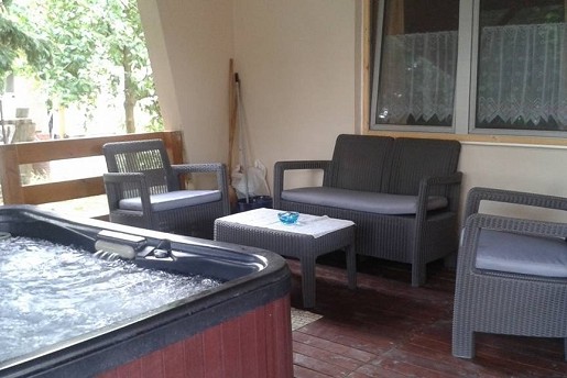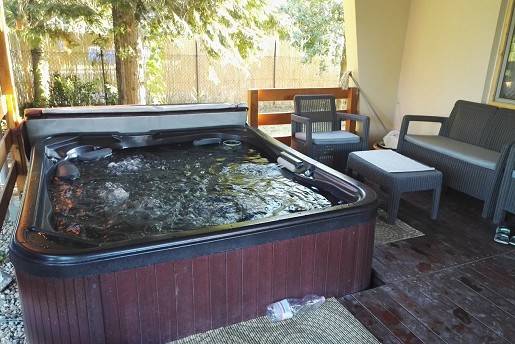 A felnőtteknek ajánljuk a vízpartra néző 30nm-es fedett teraszt melyen 6 személyes jakuzzi, beszélgető sarok, ital hűtő, és egy nagy étkezőasztal található.